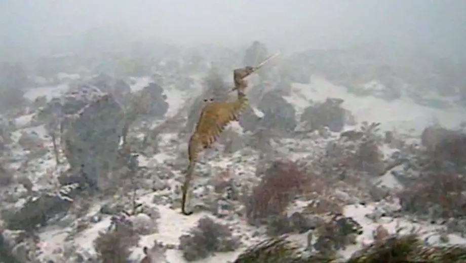 Die nun im Journal "Marine Biodiversity Records" vorgestellten Seedrachen tummelten sich in mehr als 50 Metern Tiefe in den Seetangwiesen des Recherche Archipels. Bewegt vom heftigen Wellengang wurden die 25 Zentimeter langen Tiere sogar beim Fressen beobachtet. Allerdings verfügen sie über einen Greifschwanz, mit dem sie sich vermutlich am Seetang festhalten, um nicht von starker Strömung fortgetrieben zu werden.