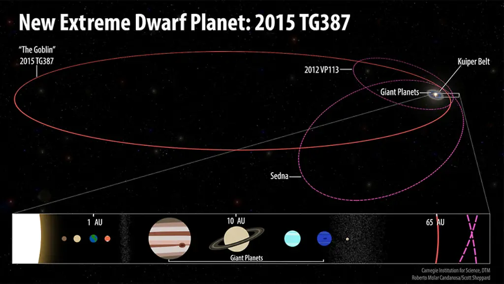 Sheppard und seine Kollegen Chad Trujillo von der North Arizona University und David Tholen von der University of Hawaii hatten den beschriebenen Himmelskörper bereits 2015 erspäht. Es brauchte jedoch drei Jahre Beobachtungen, um seine Bahn zu bestimmen. Der Kleinplanet kommt demnach der Sonne niemals näher als 65 Astronomische Einheiten (AU). Eine Astronomische Einheit entspricht der Entfernung der Erde zur Sonne. Seine extrem ellipsenförmige Bahn reicht sogar bis zu 2300 Astronomische Einheiten in den Weltraum hinaus. Zum Vergleich: Der Zwergplanet Pluto kreist in einer Entfernung von 30 bis 50 Astronomischen Einheiten um die Sonne.