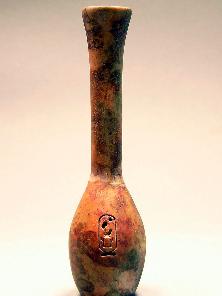 In dem unscheinbaren Fläschchen, das in der Dauerausstellung des Ägyptischen Museums der Uni Bonn zu sehen ist, fanden die Wissenschaftler nicht wie vermutet Parfüm, sondern eine Art Hautpflegelotion für die vermutlich hautkranke Monarchin, die um 1450 vor Christus lebte.