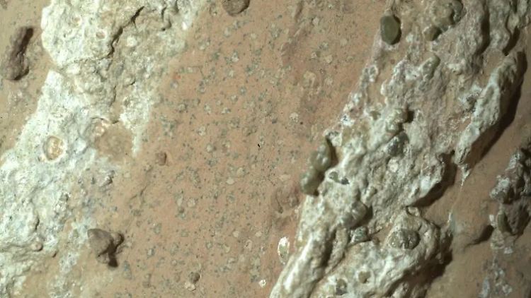 Was genau wurde in dem Gestein gefunden? Eine Analyse mit den Instrumenten des Rovers ergab, dass das Gestein unter anderem aus Ton und Schlick besteht und Elemente wie organischen Kohlenstoff und Schwefel enthält. Die Leopardenflecken wiesen Eisen und Phosphat auf. Entdeckt wurden auch weiße Adern aus Calciumsulfat. Zudem fanden die Forscher Hinweise auf das Mineral Hämatit, das unter anderem für die charakteristische rote Färbung des Mars verantwortlich ist.