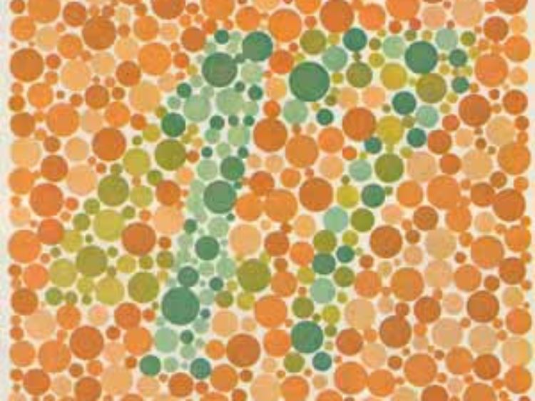 Ishihara-Tafel: Rot-Grün-Sehschwache sehen hier ausschließlich eine 17, Normalsichtige können neben der 17 eine 47 erkennen.
