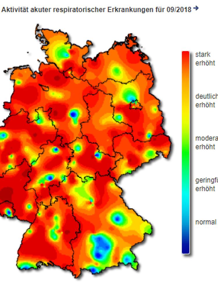 Sie waren die Spitzenreiter des letzten Grippe-Wochenreports. In diesen Bundesländern mussten die Menschen rund 3,5 Mal so oft den Arzt besuchen wie in Zeiten ohne Grippewelle. Im Saarland und in Nordrhein-Westfalen waren die Zahlen ähnlich hoch. "Dort sind die sehr hohen Werte jetzt überall gesunken", sagt Glasmacher mit Blick auf den aktuellen Report. Für Deutschland insgesamt, im Bundesdurchschnitt also, sei die Zahl nun von 2,73 Mal so vielen Arztbesuchen auf nur noch 2,61 Mal gefallen. "Das ist kein Riesenabsinken, aber der Trend macht Mut", resümiert die RKI-Sprecherin.