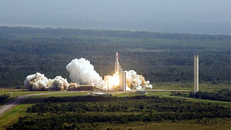 Eine Ariane-5-Rakete zieht ihre Bahn.
