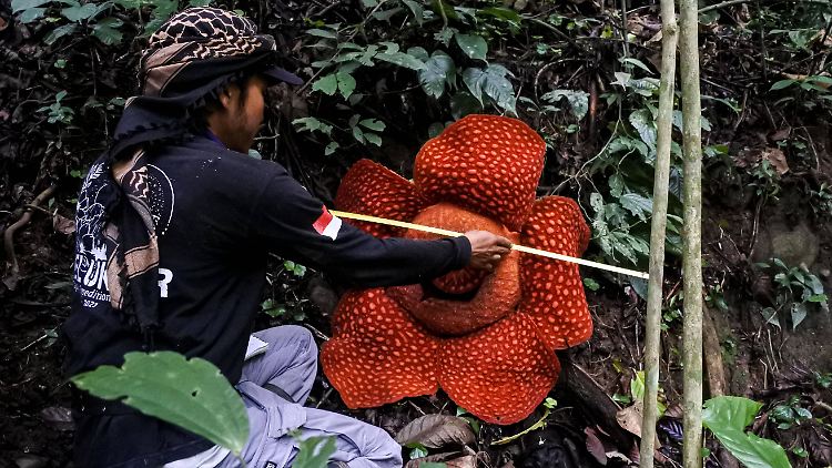 Rafflesien sind ein Wunderwerk der Natur und gelten als die größten und übelriechendsten Blumen der Welt. Die ikonischen Gewächse, die nur in den Dschungeln Südostasiens vorkommen und Experten bis heute Rätsel aufgeben, sind in großer Gefahr: "Alle 42 bekannten Arten sind mittlerweile stark bedroht", heißt es in einer internationalen Studie unter Führung der Universität Oxford, die im Fachmagazin "Plants People Planet" veröffentlicht ist. Dennoch werde bislang nur eine einzige Spezies auf der Roten Liste gefährdeter Arten der Weltnaturschutzunion (IUCN) geführt. Die Autoren stufen hingegen 25 Rafflesia-Arten als "vom Aussterben bedroht", 15 als "stark gefährdet" und zwei als "gefährdet" ein.
