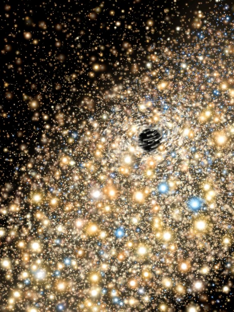 Die künstlerische Darstellung zeigt Sterne, die sich auf ein gigantisch großes Loch zubewegen.