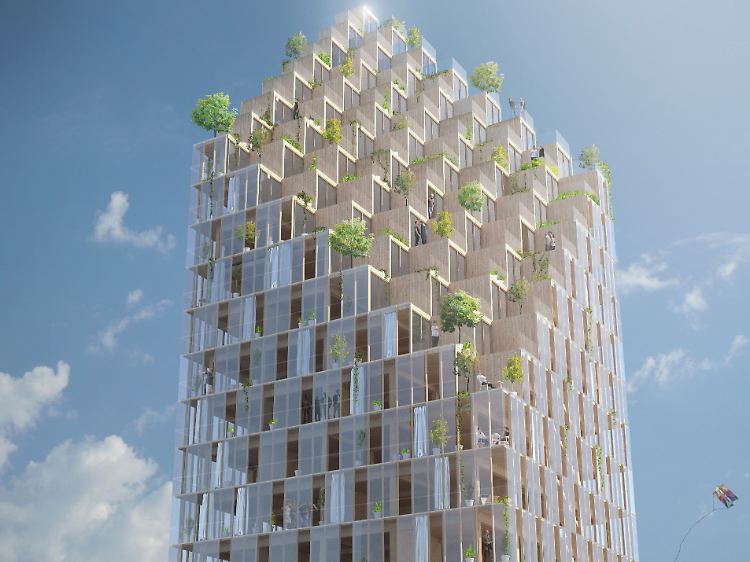 Wie wird das aussehen? Angesichts des mit zunehmendem Wachstum immer kostbarer werdenden Bodens werden Städte auch in Zukunft nach oben wachsen müssen. Hochhäuser beschäftigen Architekten und Städteplaner daher nach wie vor - doch könnten die Wolkenkratzer der Zukunft sich von den heutigen wesentlich unterscheiden. Statt der bisher bewährten Baustoffe Stahl und Beton könnte ein anderes Material eine Renaissance erleben: Holz.