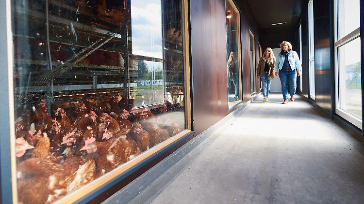 Sonja Hillemacher und Dr. Inga Tiemann (v.l.) im Hühnerstall auf dem Campus Frankenforst der Universität Bonn.