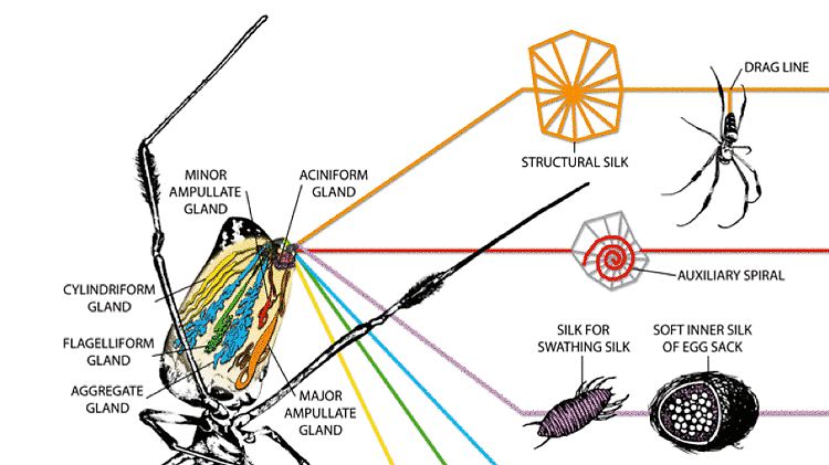 Denn Spinnenseide ist nicht gleich Spinnenseide. So unterscheidet sie sich nicht nur zwischen den verschiedenen Arten der Webspinnen, sondern auch innerhalb eines einzelnen Tiers. "Spinnen können bis zu sieben verschiedene Arten von Seide herstellen und für jede haben sie ein anderes Organ." Da gibt es beispielsweise die major Ampullate, eine feste Seide, die für die gekreuzten Hauptstrukturen der Spinnennetze Verwendung findet. Verbunden werden diese Fäden mit einer anderen, elastischen Seide.
