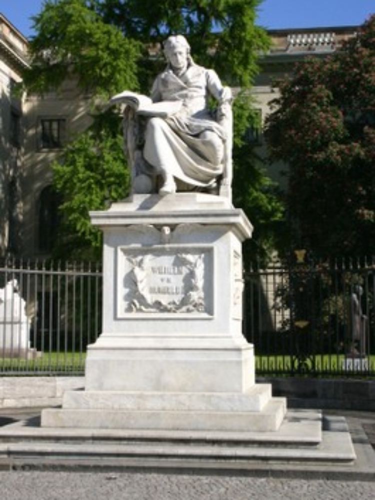 Das Denkmal von Alexander von Humboldt ziert den Haupteingangsbereich der Universität (Bild: Heike Zappe).