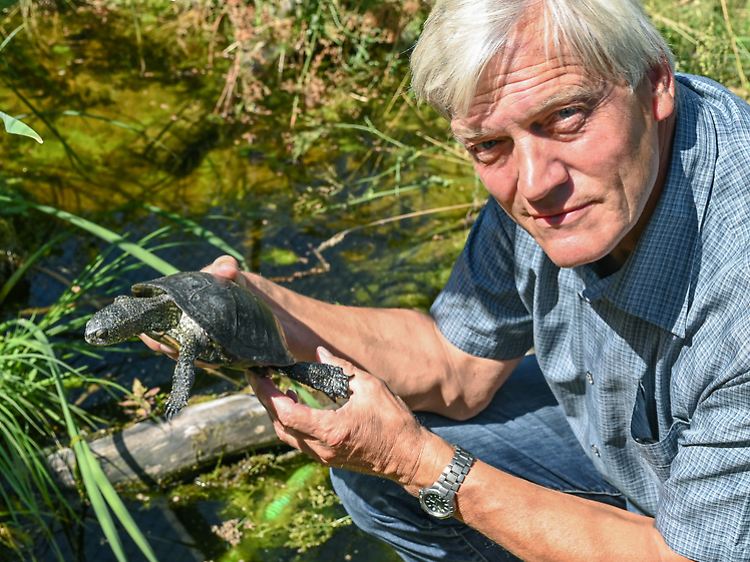 "Die von uns entdeckten Tiere hatten Eier abgelegt, doch die Plätze dafür waren ungeeignet, es schlüpfte kein Nachwuchs, erinnert er sich. Die Naturschützer nahmen die Gelege mit, brüteten sie in der Station künstlich aus. Gleichzeitig kauften sie von Landwirten Schildkröten-geeignete Flächen auf für die Auswilderung. Im Alter von zwei Jahren und einer Panzergröße von sieben bis zehn Zentimetern geht es für die nachgezüchteten Reptilien in die Freiheit.