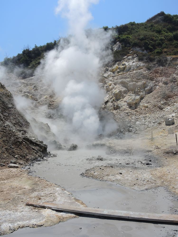 Manche Forscher zählen die Phlegräischen Felder (Campi Flegrei) zu den weltweit wenigen Dutzend aktiven Supervulkanen. Sie haben vor Jahrtausenden ein Vielfaches jener Magmamenge ausgestoßen, die durch den Vesuv im Jahr 79 n. Chr. zum Untergang von Pompeji führte. Die Felder umfassen ein 150 Quadratkilometer großes Gebiet. 1,5 Millionen Menschen leben nach Angaben der Forscher in dieser Region, die auch Neapel einschließt. Vielerorts steigen Dampfsäulen aus Felsspalten auf, Steine sind rötlichgelb verfärbt. Der Name stammt von griechischen Siedlern - phlegräisch heißt so viel wie brennend.