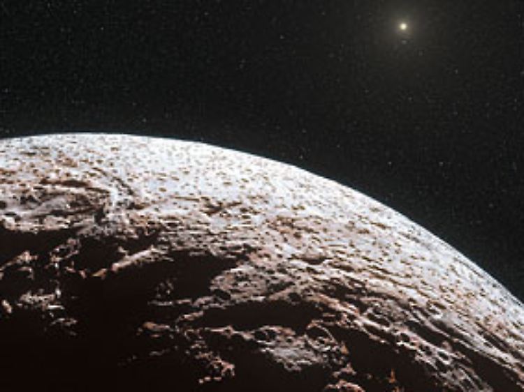 Der eisige Zwergplanet Makemake am Rande unseres Sonnensystems hat anders als vermutet keine Atmosphäre. Das hat die trickreiche Beobachtung mit Hilfe des Lichts eines fernen Sterns enthüllt, die ein internationales Forscherteam im Fachblatt "Nature" vorstellt. Der Zwergplanet, der ein Drittel kleiner ist als Pluto und noch deutlich weiter von der Sonne entfernt seine Bahn zieht, reflektiert demnach in etwa so gut wie schmutziger Schnee und hat eine rund 70 Prozent größere Dichte als Wasser.