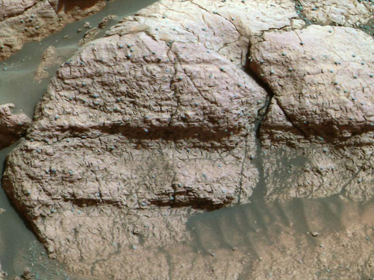 Das Bild zeigt die Marsoberfläche im März 2004.Die Gesteinsform lässt vermuten, dass es einst Wasser im Überfluss auf dem Roten Planeten gegeben haben muss.