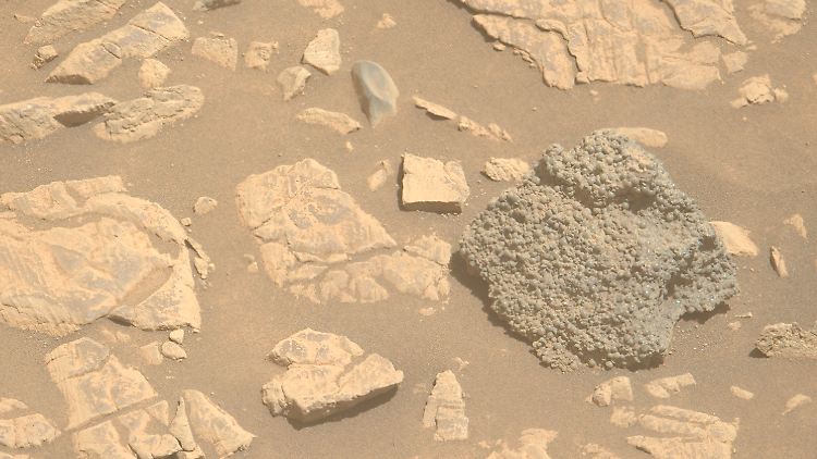 Unzählige winzige Kügelchen aus Stein zusammengeklumpt: Auf dem Mars stößt der Nasa-Rover "Perseverance" auf einen ungewöhnlichen Felsbrocken. Die Wissenschaftler beschreiben die Entdeckung als "schockierend" und rätseln über dessen Entstehung.