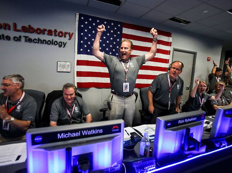 "Mein Herz hat kurz aufgehört zu schlagen, so nervös war ich", sagte Nasa-Manager Rick Nybakken. "Wir haben zehn Jahre auf diesen Moment hingearbeitet." Der Erfolg des Manövers fühle sich "großartig" an, sagt sein Kollege Geoffrey Yoder. "Es ist phänomenal."