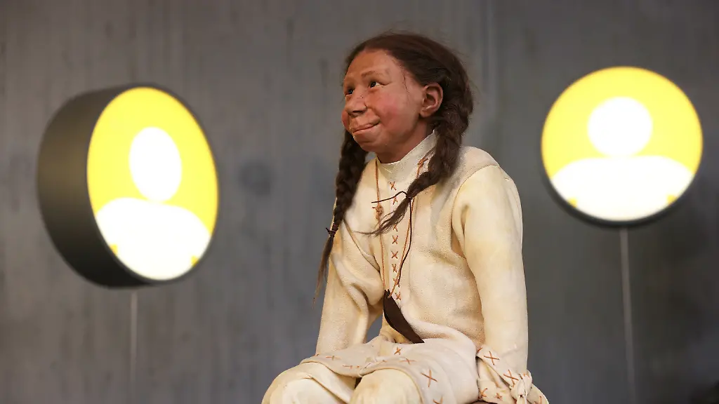 Auf den ersten Blick denkt man, ein kleines Mädchen mit Zöpfen hätte sich im Museum auf einen der Schaukästen gesetzt und würde die nackten Füße herunterbaumeln lassen. Die Kleine hat dazu ein charmantes Grinsen aufgesetzt. Erst beim Näherkommen merkt man, dass sie irgendwie anders aussieht. Ihr Gesicht wirkt ungewöhnlich keilförmig, mit einem fast waagerecht verlaufenden Nasenbein. Es handelt sich um die Rekonstruktion eines etwa siebenjährigen Mädchens, das vor etwa 65.000 Jahren in Südwestfrankreich bestattet wurde. Ein Neandertalermädchen.