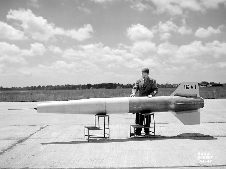 Ein NASA-Flugkörper aus dem Jahr 1947, der von einem Staustrahltriebwerk angetrieben wird.