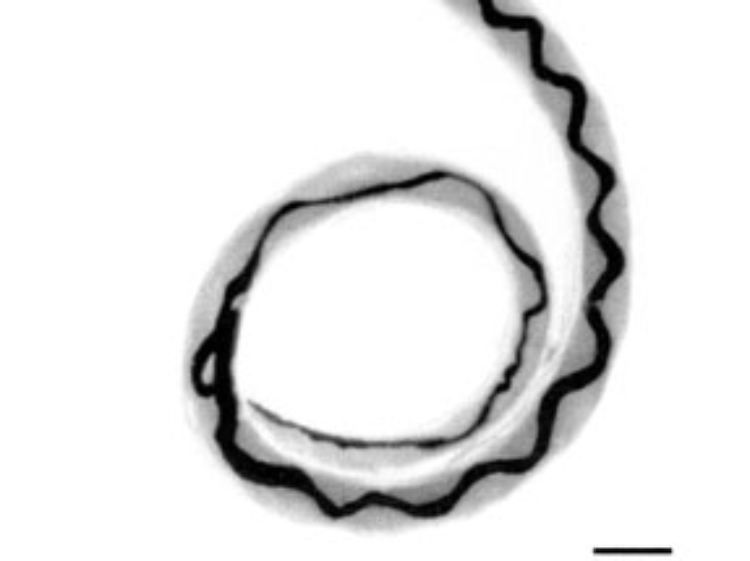 Mikroskopische Aufnahme eines männlichen Exemplars des Ratten-Lungenwurms.