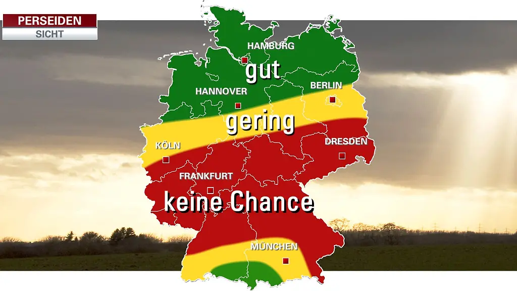 "Im nördlichen Teil Deutschlands, von den Küsten bis weit nach Niedersachsen und Brandenburg hinein, stehen die Chancen, die Perseiden zu sehen, gut", sagt n-tv Meteorologe Björn Alexander. "In diesen Regionen lockern die Wolken am späten Abend und in der Nacht auch mal auf." Auch am Hochrhein wird dem n-tv Wetterexperten zufolge der Himmel immer mal wieder klar sein.