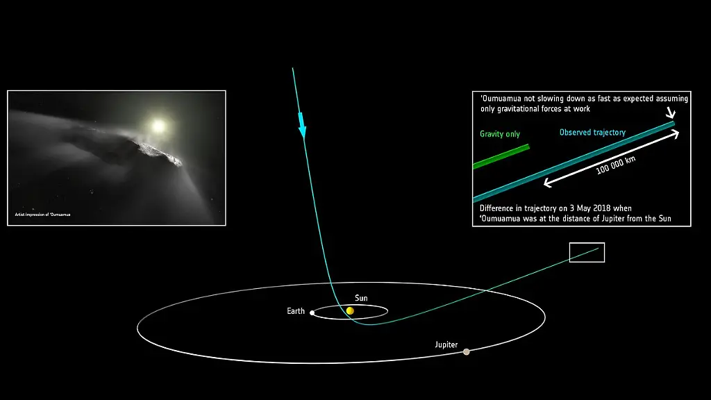 Michelis Team hat viele mögliche Mechanismen analysiert und als Ursache ausgeschlossen, darunter den Sonnenwind genannten Teilchenstrom von unserem Zentralgestirn, den Strahlungsdruck der Sonne und Reibungskräfte. Ein kometenartiges Ausgasen durch die Sonnenwärme, bei dem der Rückstoß des Gasstroms den Kern zusätzlich beschleunigt, könne die Flugbahn dagegen gut erklären.