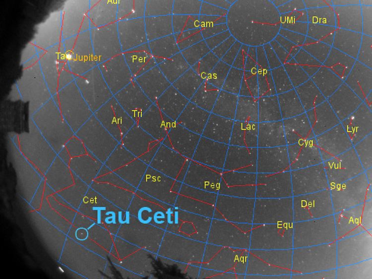 Tau Ceti liegt im Sternbild Walfisch. Foto: D. Campbell for the AllSky camera network at the University of Hertfordshire, 2012