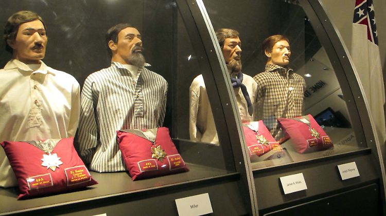 Die rekonstruierten Gesichter und Oberkörper der Hunley-Besatzung sind in einem Museum ausgestellt.