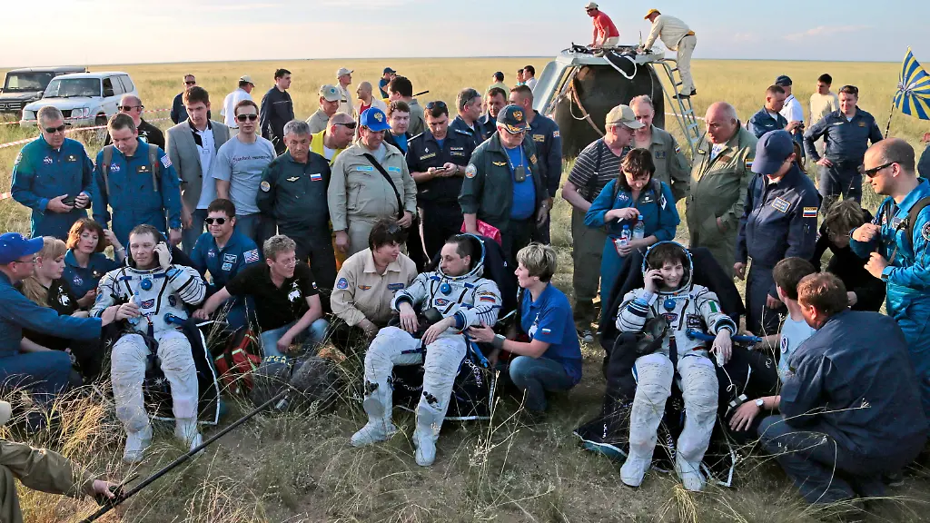 Mit einem großen Fallschirm segelte die Sojus etwa 150 Kilometer südöstlich der Steppenstadt Scheskasgan zu Boden. Ein Bergungsteam half den Raumfahrern wenige Minuten nach der Landung aus der engen Kapsel. Die Sojus TMA-15M hatte rund dreieinhalb Stunden zuvor vom Außenposten der Menschheit in rund 440 Kilometern Höhe abgedockt.