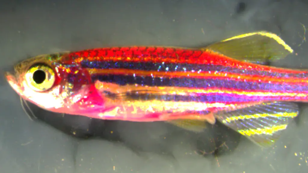 Konfettizellen dank GentechnikRegenbogenfisch erstrahlt in bunten Farben