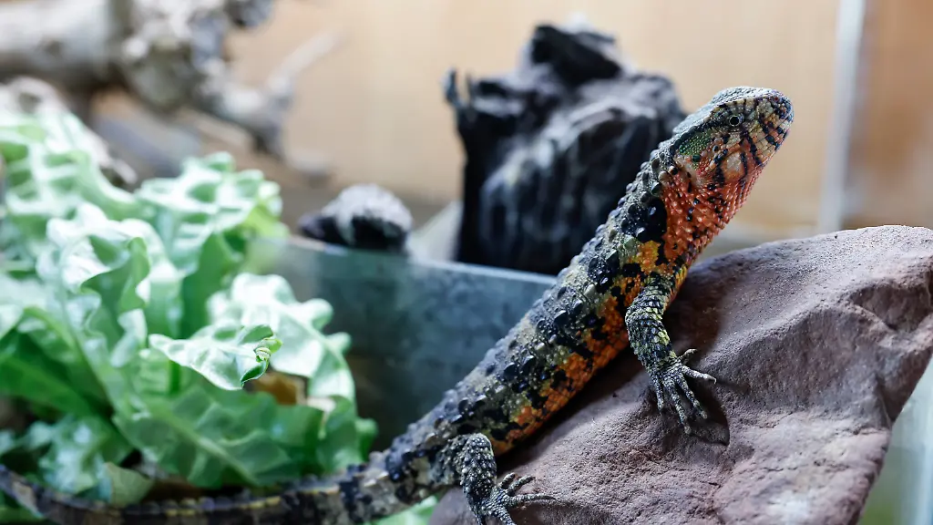 Statt auf einen Fernseher schaut Helmut Mägdefrau vom Sofa aus auf zwei große Terrarien. In dem einen, zimmerhohen verspeisen Grüne Baumeidechsen gerade ein paar Grillen zum Frühstück. In dem anderen verharrt eine chinesische Krokodilschwanz-Höckerechse regungslos auf einem Stein, selbst als Mägdefrau die Glastür aufschiebt. "Der ist relativ tiefenentspannt", sagt er. Das Männchen für ein Foto in seinem Wohnzimmer in Lauf an der Pegnitz auf die Hand nehmen würde er trotzdem nie: "Das sind keine Schmusetiere."