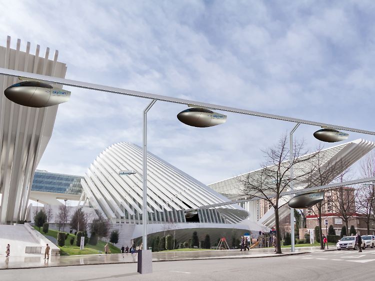 Der SkyTran ist eine Variante des PRT. Mit ihm sollen die Fahrgäste über den Verkehr der Städte schweben.