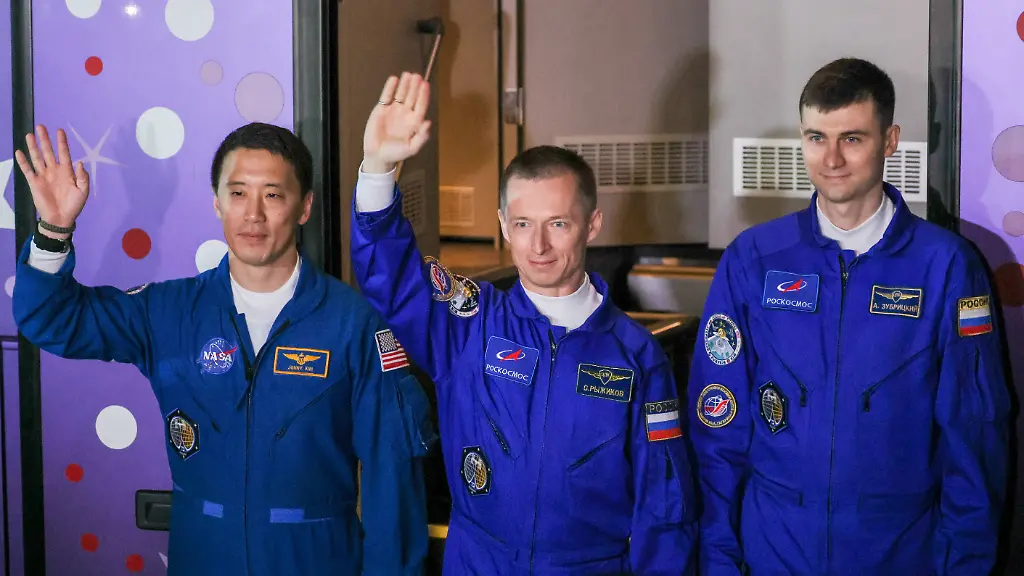 An Bord der Raumkapsel befinden sich die russischen Kosmonauten Sergei Rischikow und Alexei Subrizki sowie der Nasa-Astronaut Jonny Kim. Nach Angaben von Roskosmos soll die Besatzung bis zu ihrer geplanten Rückkehr auf die Erde am 9. Dezember fünfzig wissenschaftliche Experimente im Weltraum umsetzen. Der Start der anlässlich des 80. Gedenktags zum Ende des Zweiten Weltkriegs umlackierten Sojus-Rakete lockte rund 2500 Schaulustige an - laut Roskosmos ein neuer Rekord in Baikonur.