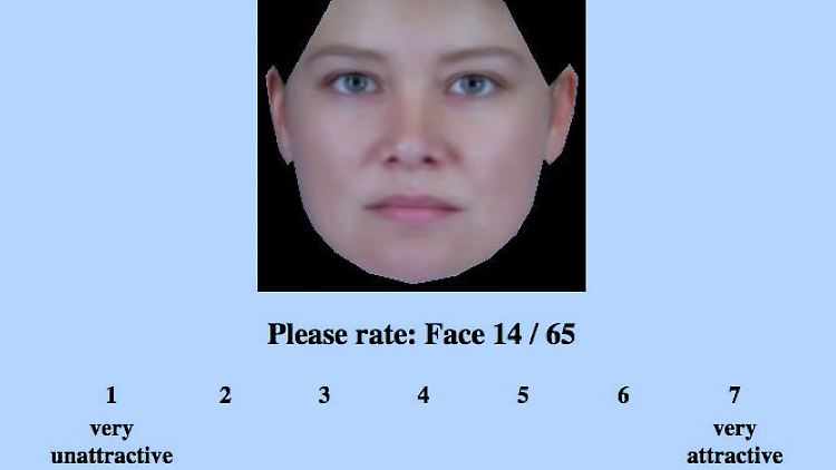 Der Screenshot aus einer Online-Studie zeigt ein Gesicht, das mit Noten von eins bis sieben hinsichtlich der Attraktivität bewertet werden konnte.
