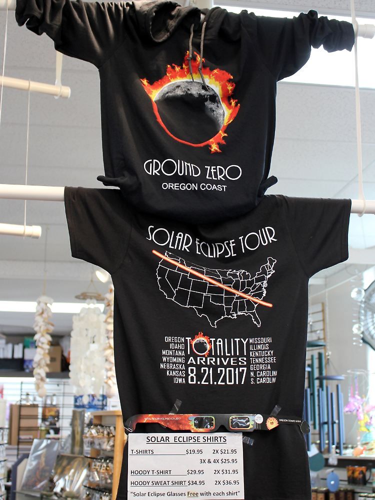 Quer durchs Land: Ein T-Shirt zeigt den Bereich in den USA, wo die totale Sonnenfinsternis zu sehen sein wird.