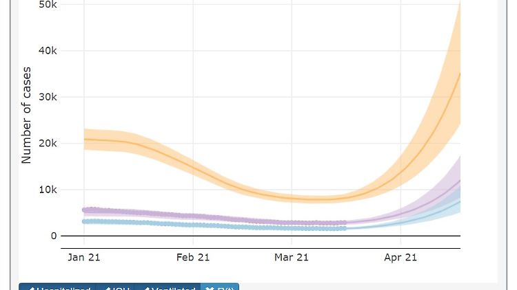 Wie ernst die Situation ist, kann man im Covid-19-Simulator nachvollziehen. Denn das Modell bildet die Entwicklung der vergangenen Wochen nahezu perfekt nach, wenn man den R-Wert (Future R(t)s) manuell beginnend am 9. März auf 1,39 stellt. Ungefähr mit den ab diesem Datum geltenden Lockerungen habe sich der Wert "ein bisschen sprunghaft erhöht", was im Simulator noch nachjustiert werden müsse, so Lehr. Dies liege nicht nur an den Öffnungen, sondern auch an der schneller fortgeschrittenen Verbreitung der Mutante.