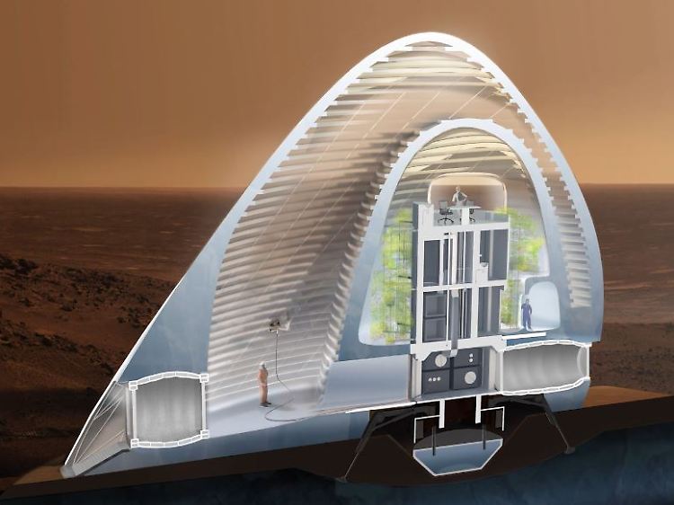 Doch das ist ein gewaltiges Unterfangen, wie die US-Raumfahrtbehörde Nasa immer wieder feststellen muss. In welcher Art von Behausung etwa sollen die Raumfahrer untergebracht werden? Diese muss ihre Bewohner schließlich vor den eisigen Temperaturen und der gefährlichen Strahlung aus dem Weltraum schützen. Zudem limitiert die weite Entfernung von zig Millionen Kilometern zur Erde die Menge an Material, die mit einem Raumschiff zum Mars transportiert werden kann.