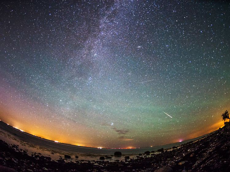 Sternschnuppen rechts neben der Milchstraße, im August 2015 auf Fehmarn.