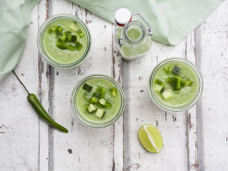 Gazpacho ist eine kalte Gemüsesuppe, unter anderem aus Tomaten, Gurken, Paprika, Zwiebeln und Knoblauch. Sie ist reich an Vitamin C und soll auch entzündungshemmend wirken.