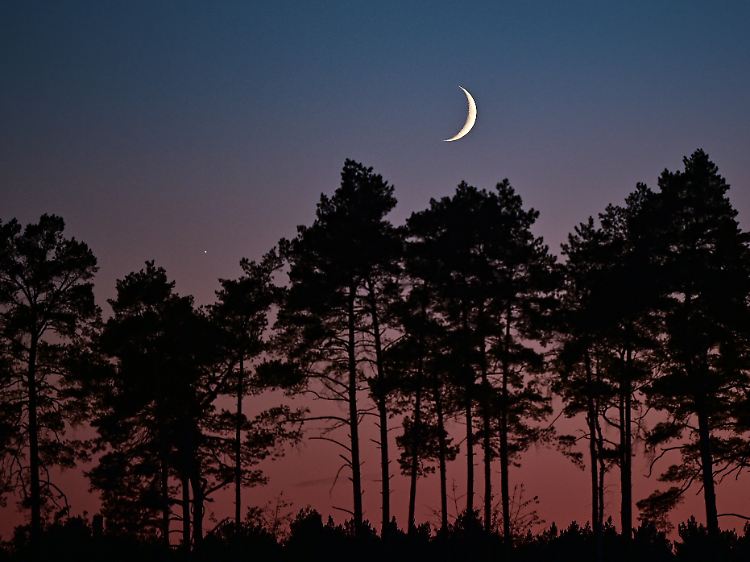 Die Sichel des zunehmenden Mondes zusammen mit der Venus am Abendhimmel (Bild von 2021).