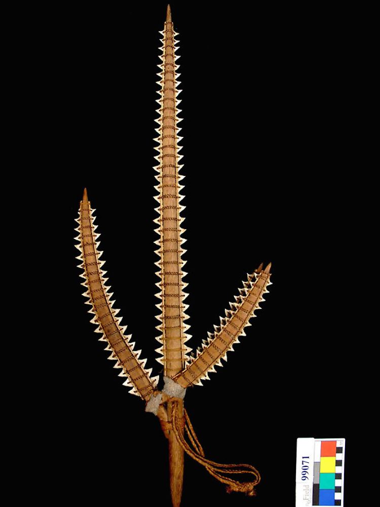 Die Forscher um Joshua Drew vom Field Museum of Natural History (Chicago/US-Staat Illinois) untersuchten nun mehr als 100 solcher Waffen sowie einige einzelne Hai-Zähne, die sich in der Sammlung des Museums befinden. Die Objekte wurden in der zweiten Hälfte des 19. Jahrhunderts gefertigt. Anhand von Größe und Form der Zähne sowie einiger anderer Merkmale konnten die Forscher die Art der Haie bestimmen, aus deren Zähnen die Waffe gebaut worden war. Insgesamt identifizierten sie acht verschiedene Hai-Arten. Zwei davon sind weder in historischen Aufzeichnungen erwähnt noch finden sie sich in heutigen Artenlisten der Gilbertinseln: der Schwarzhai (Carcharhinus obscurus) und der Sorrahhai (Carcharhinus sorrah).