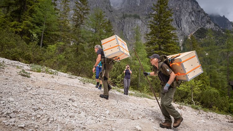 Vor mehr als 140 Jahren sind Bartgeier in Deutschland ausgerottet worden. Nun werden sie im Nationalpark Berchtesgaden wieder mühevoll angesiedelt. Zwei ausgewilderte Exemplare stehen kurz vor ihrem ersten Flug.