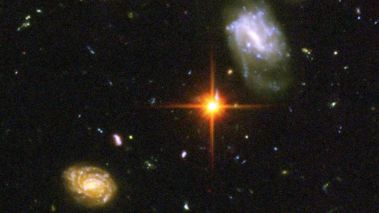 Ein tiefer Blick ins All zeigt eine chaotische Ansammlung von Galaxien in bizarren Formen. Weiter als 13,7 Milliarden Lichtjahre können wir nicht schauen.