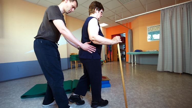 Jutta Redetzky übt mit ihrem Physiotherapeuten Volker Swoboda. Die 61-Jährige leidet an Hereditären Spastischen Spinalparalyse, ...
