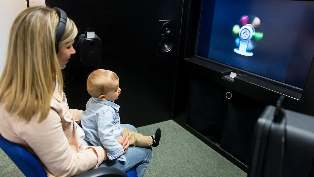 Dass Henri an diesem Morgen im Dienste der Wissenschaft unterwegs ist, weiß er nicht. Das Baby sitzt auf dem Schoß seiner Mutter, vor ihm zeigt ein Bildschirm ein buntes Muster, von rechts und links erklingen Silben aus einem Lautsprecher. Wenige Minuten dauert der Test im Babysprachlabor der Universität Konstanz. Wenn zu lange die gleiche Silbe kommt, wird es Henri langweilig. Sobald er einen neuen Laut hört, schaut er wieder auf den Bildschirm.