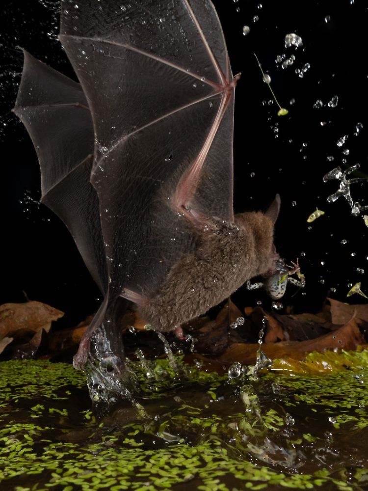 Und erwischt! Die Fledermaus mit ihrer Frosch-Beute.