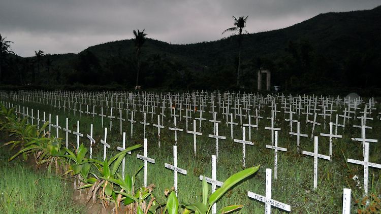 Gedenk-Grabkreuze in Tacloban, Philippinen, für die Tausenden Toten durch Taifun "Haiyan".