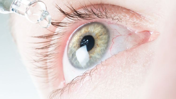 Sind die Augen zu trocken, kann man sie zum Beispiel mit Tropfen befeuchten.