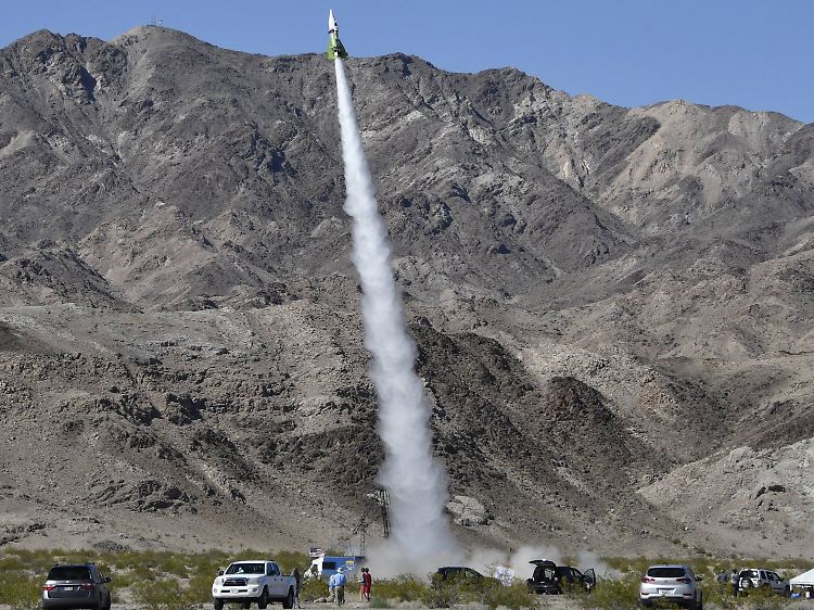 Mike Hughes, der sich selbst "Mad Mike" nennt, bei seinem Raketenstart am 24. März 2018.
