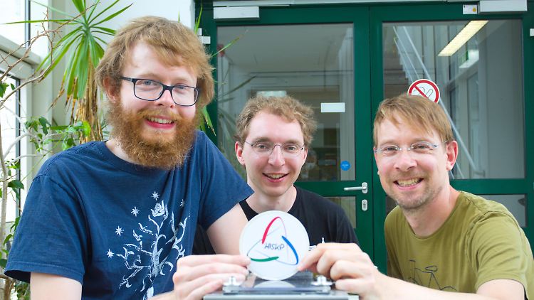 Das Physikerteam Christoph Schürmann, Johann Ostmeyer und Prof. Carsten Urbach (v.l.) haben das Rätsel des Bierdeckel Fluges gelüftet.