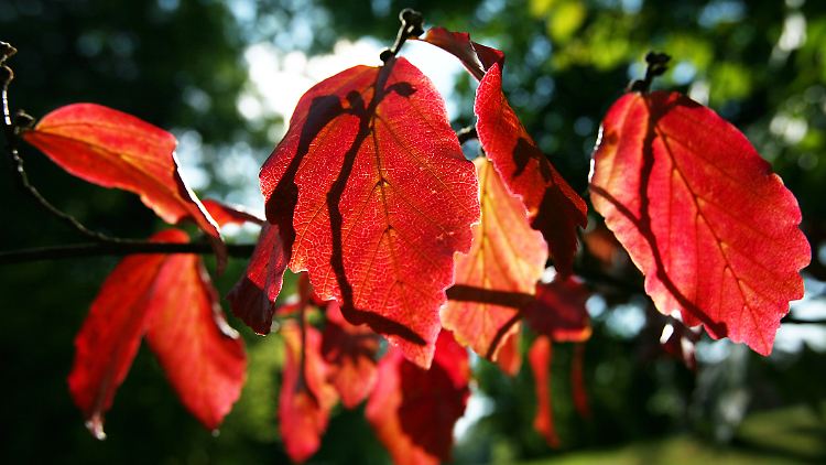 Grün, gelb, orange, braun – da fehlt uns immer noch das Rot. "Eine knallrote Blattfärbung kann entstehen, wenn das Wetter ganz besonders ist", verrät jetzt die Botanikerin. "Das passiert also nicht immer." Besonders heißt in diesem Fall, dass tagsüber kräftig die Sonne scheinen und es recht warm sein muss, während die Temperaturen nachts stark abfallen. "Dann nämlich", sagt Hohlstein, "betreibt der Baum tagsüber viel Photosynthese und baut also im lichtbetriebenen Prozess Zucker auf. Normalerweise würde er diesen Zucker in der Nacht über Zweige und Stamm zu den Wurzeln bzw. den Speicherorten transportieren oder dorthin, wo er verbraucht wird. Wenn es nachts schon sehr kalt ist, funktioniert der Zuckertransport aber nicht mehr. Und dann…", und jetzt kommen wir endlich zur Farbe Rot, "bilden sich in den Blättern zuckerhaltige Farbstoffe, die sich Anthocyane nennen, und sie bewirken, dass das Laub flammendrot aussieht."
