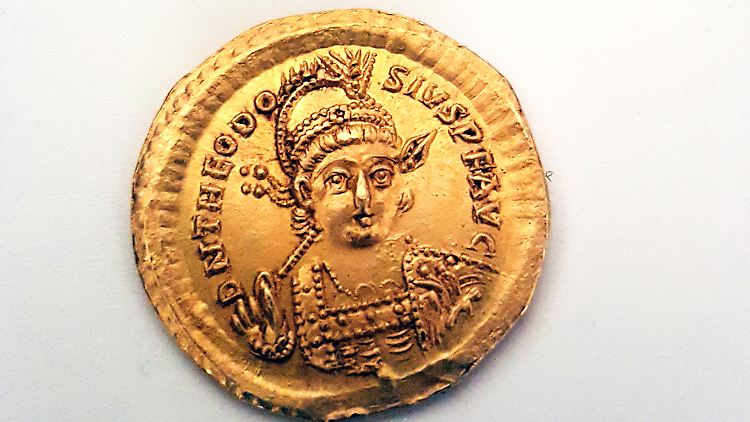 Auf einer Seite der Goldmünze sei der byzantinische Kaiser Theodosius II. zu sehen, auf der anderen die Siegesgöttin Victoria. Ähnliche Münzen kenne man aus dem Byzantinischen Reich, dies sei jedoch die erste, die in Israel gefunden wurde, sagte Bijovski. Die Münze symbolisiere einen dramatischen Moment in der jüdischen Geschichte, sagte Jair Amizur, Chefarchäologe der Behörde.